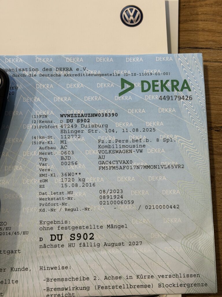 Nowy TUV zrobiony 11.08.2025 z przebiegiem 112772km